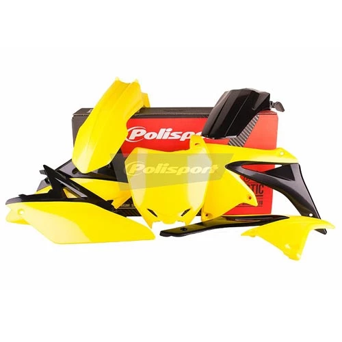 Renew the look of your dirtbike with a complete Polisport plastics kitThis kit includes: yellow front mudguard, black rear mudguard, black/yellow radiator shrouds, black/yellow side number plates, yellow front number platePolisport plastics are injection moulded for a perfect OEM type fit Manufactured from a durable gloss polypropyleneHighly durable, UV resistant plastic with a high gloss finish